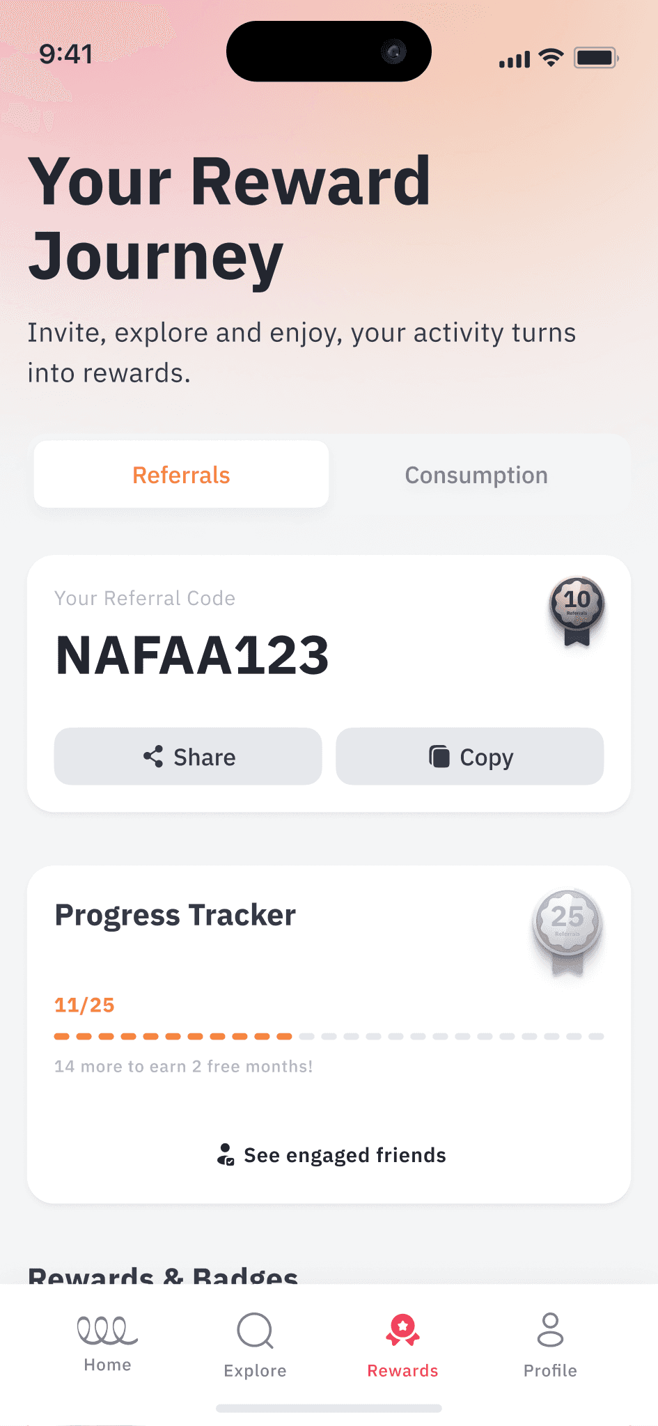 Nafaa turns everyday student actions into rewards, the more you use the app and invite friends, the more you earn.